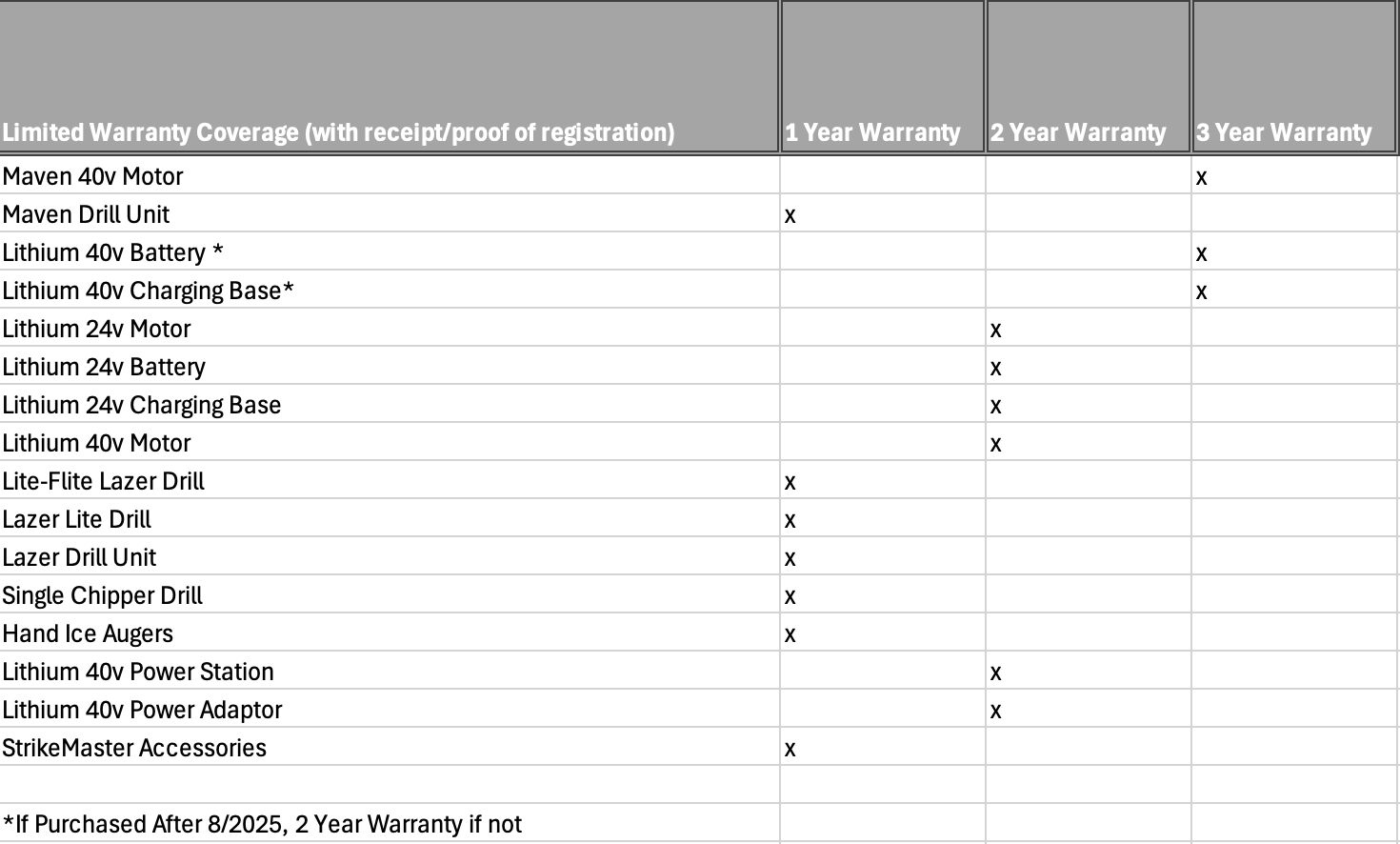 StrikeMaster Warranty